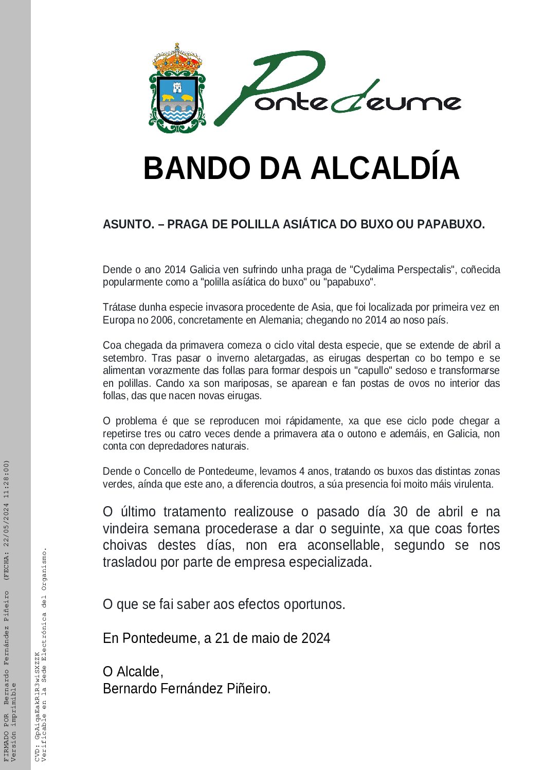 22 Maio, 202422 Maio, 2024BANDO POLILLA ASIATICA DO BUXO OU PAPABUXOpor Concello de Pontedeumeen Administración