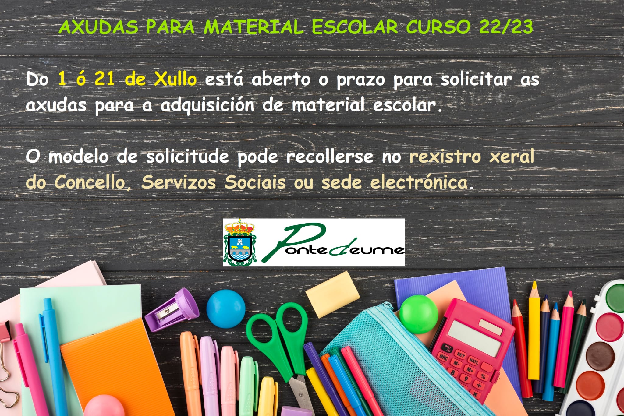 Resolución definitiva das axudas ás familias para adquisición de material escolar Curso 2022 - 2023