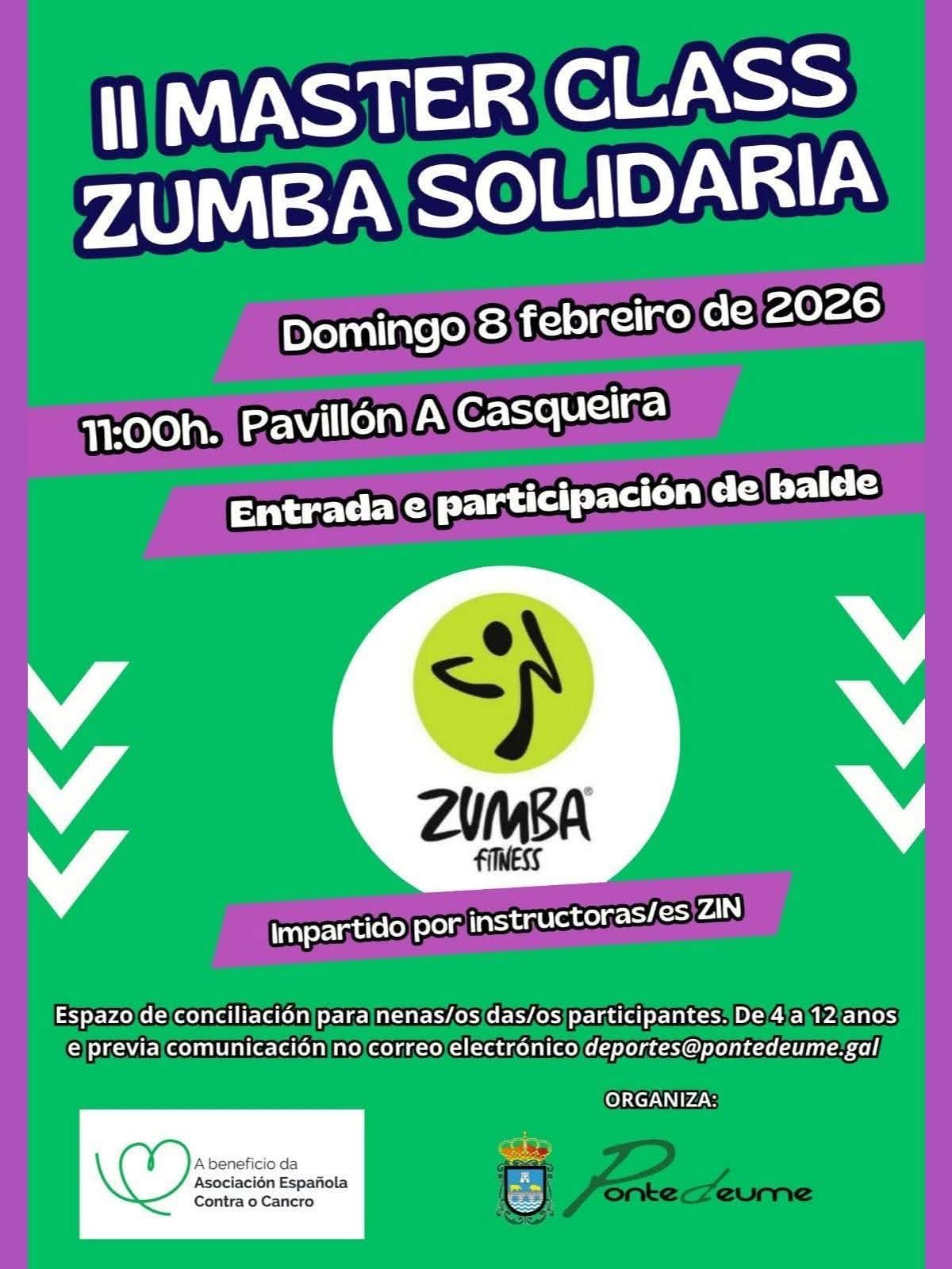 Pavillón Municipal "A Casqueira" Avda. do Peirao s/n, Pontedeume, A Coruña, SpainEl Ayuntamiento de Pontedeume organiza, el próximo 8 de febrero a las 11:00h y a beneficio de la Asociación Española Contra el Cáncer, la segunda edición de la Master Class...