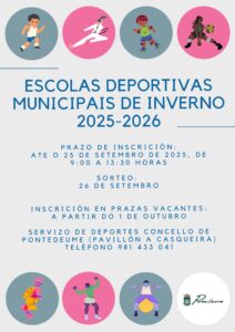 Preinscrición: ata o 25 de setembro de 2025, no Pavillón Municipal de deportes ‘A Casqueira’ e no Concello de Pontedeume.