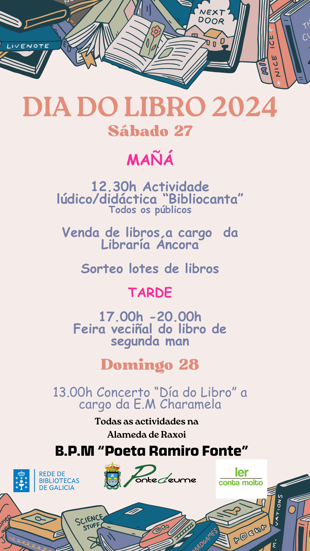 Como cada ano, o Concello de Pontedeume presenta a súa programación para festexar o Dia do libro. Este ano trátase dunha fin de semana con diversas actividades entre o sábado 27 e o domingo 28.