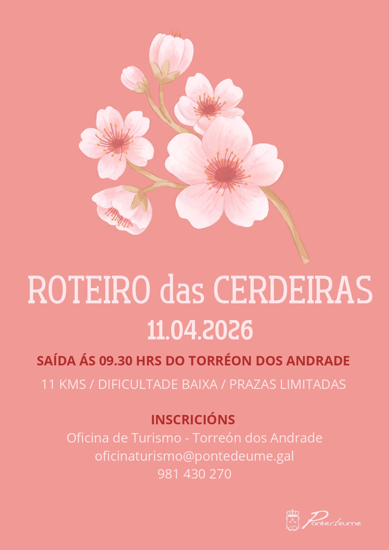 Todas as persoas interesadas poden inscribirse na Oficina de Turismo (Torreón dos Andrade), no email oficinaturismo@pontedeume.gal ou no teléfono 981430270 ata completar prazas.