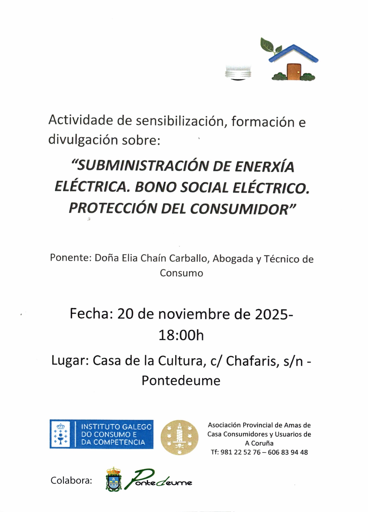 Ponencia: Subministración de enerxía eléctrica. Bono social eléctrico. Protección do consumidor.