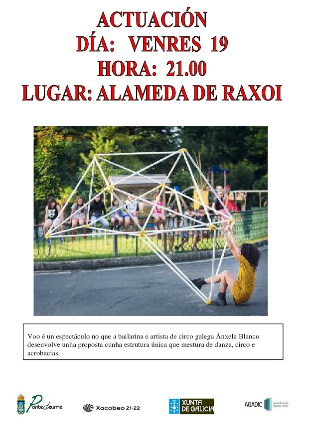 Voo é un espectáculo no que a bailarina e artista de circo galega Ánxela Blanco desenvolve unha proposta cunha estrutura única que mestura a danza, o circo e as acrobacias.