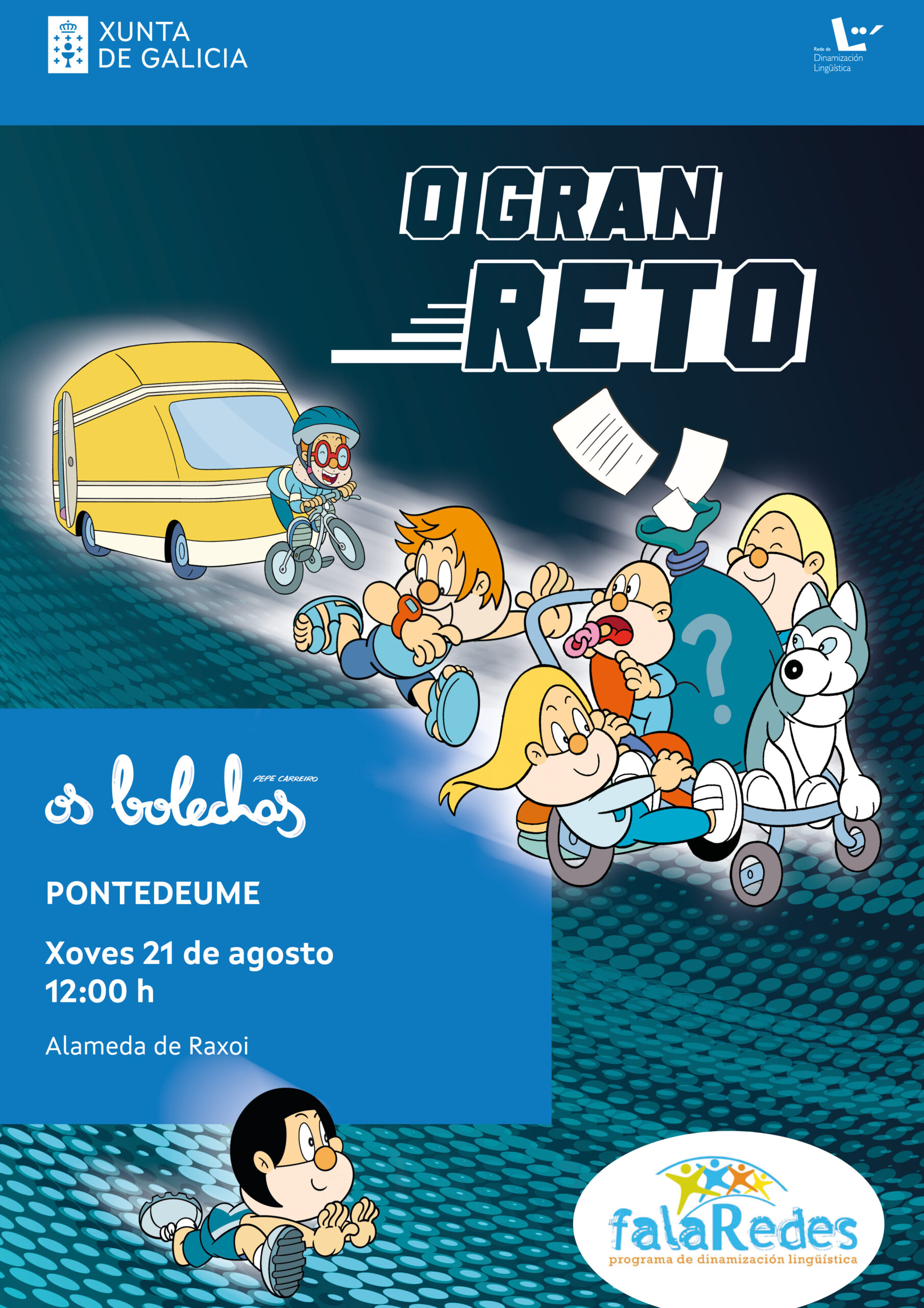 Os Bolechas regresan coa súa caravana chea de sorpresas e unha nova misión: superar “O gran reto deportivo”. Todo comeza cando aparece un misterioso personaxe que, co seu saco cheo de probas, reta a familia Bolechas a poñerse en forma e dar o mellor de si. Deporte, traballo en equipo e moito humor serán os... |