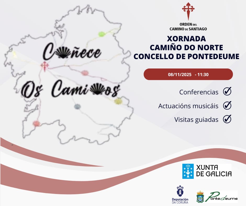 O proxecto "Coñece os Camiños", impulsada pola Orde do Camiño de Santiago xunto co Concello de Pontedeume, organiza xornadas multidisciplinares en concellos galegos para promover e difundir os distintos roteiros xacobeos, neste caso, O Camiño inglés ao seu paso por Pontedeume. A través de eventos, a iniciativa busca dar a coñecer o patrimonio cultural do... |