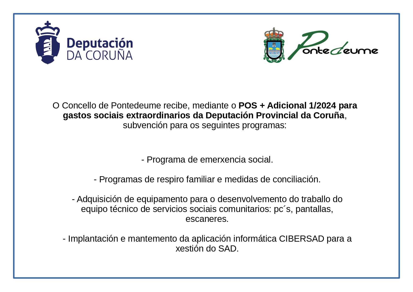 21 Xuño, 202418 Marzo, 2025POS + Adicional 1/2024 para gastos sociais extraordinarios da Deputación Provincial da Coruñapor Concello de Pontedeumeen Administración POS + Adicional 1/2024 para gastos sociales extraordinarios de la Diputación Provincial de A Coruña 90.05 KB Baixar